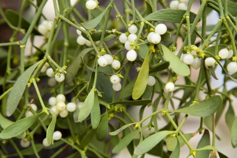 Liście ułożone w dwóch szeregach na łodydze szybko opadają w jej dolnych partiach.