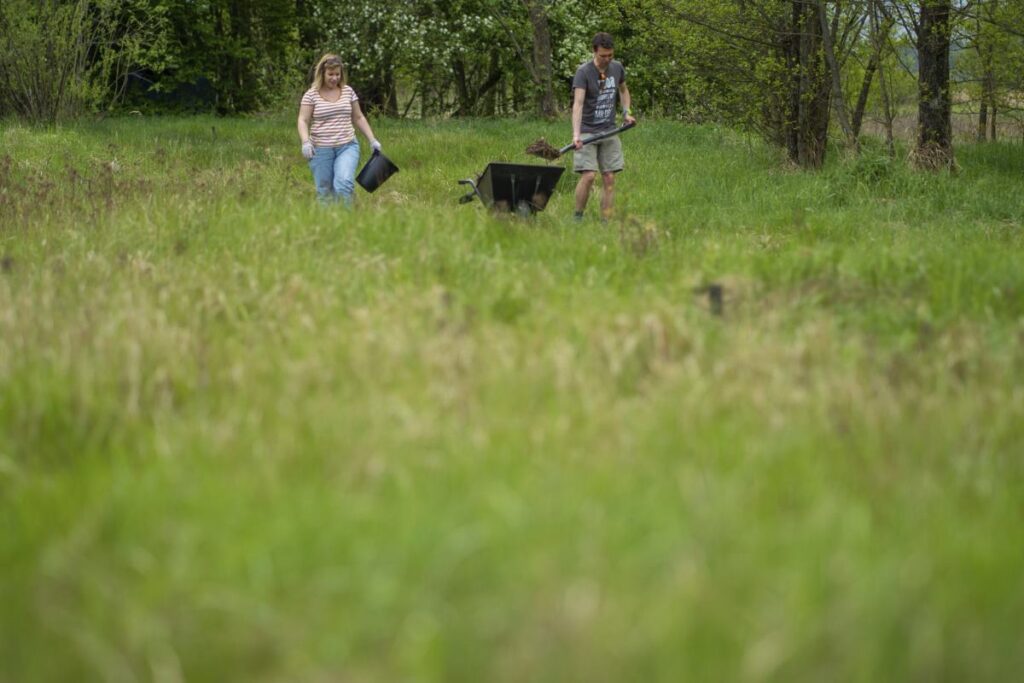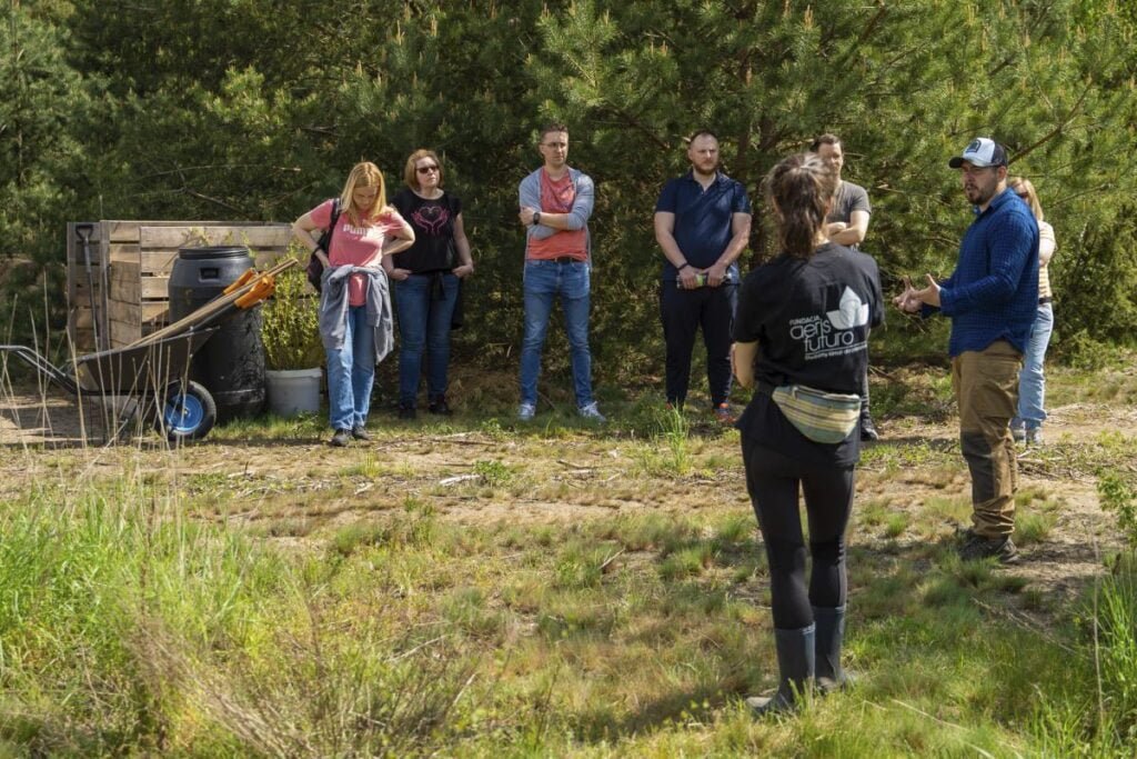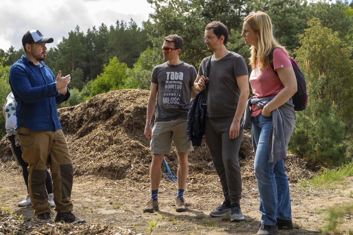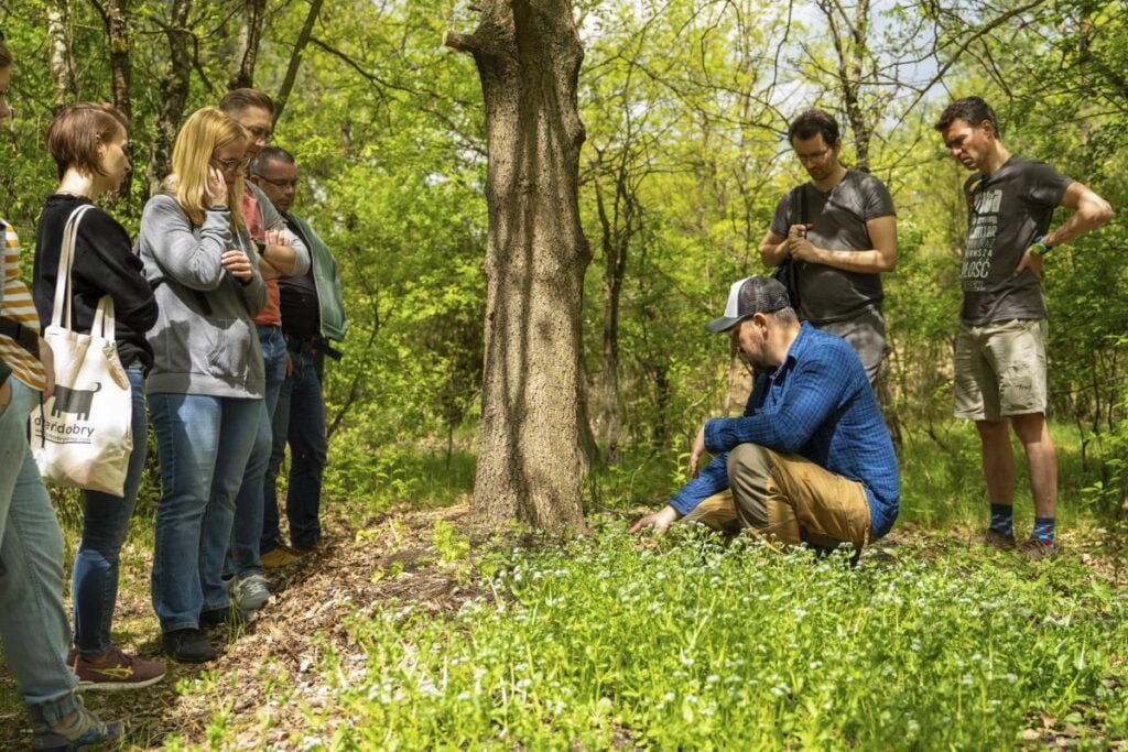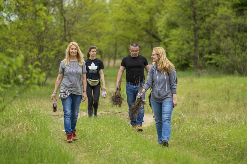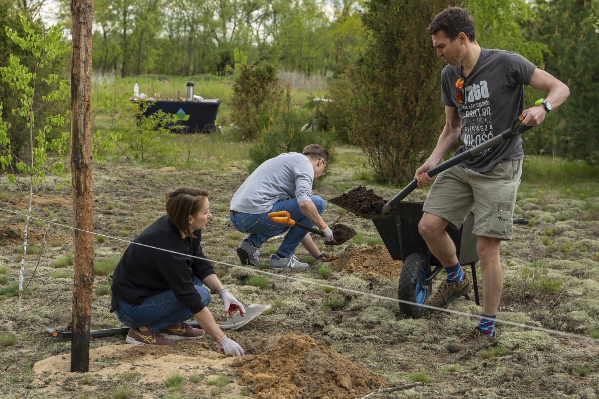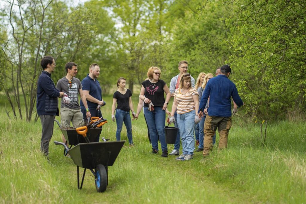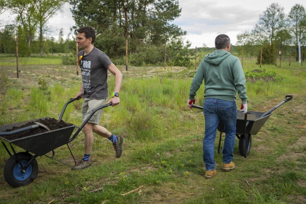On May 17, 11 male and female employees from Siemens planted trees in the area of the permaculture habitat, Dolina Mgieł, as part of employee volunteer work. The goal was to plant 500 seedlings of species such as hornbeam, ash, alder, linden and hazel. Volunteers were first shown around the habitat by the host, Łukasz Nowacki, who talked about what permaculture is and what techniques and assumptions are used in the Dolina Mgieł area, which make cultivation possible despite the presence of poor soils of the fifth and sixth bonitation classes. Male and female volunteers took part in a short workshop on the science of planting, mycorrhization, mulching and composting. After a theoretical introduction, planting began.