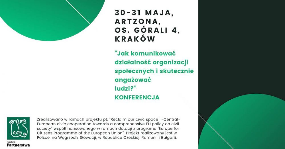 Drodzy działacze i drogie działaczki, zapraszamy Was na konferencję z elementami warsztatowymi pt. “Jak komunikować działalność organizacji społecznych i skutecznie angażować ludzi?”, realizowaną w ramach międzynarodowego projektu „Odzyskaj naszą przestrzeń obywatelską!” ze środków Programu “Europa dla Obywateli” Unii Europejskiej przez Fundusz Partnerstwa. Na konferencji poruszony będzie także temat związany z kondycją polskich organizacji, w szczególności działających na rzecz zrównoważonego rozwoju, zastanowimy się co możemy zrobić razem i jak zachęcić lokalne społeczności do większego zaangażowania się w nasze działania.