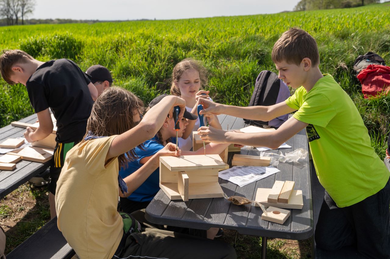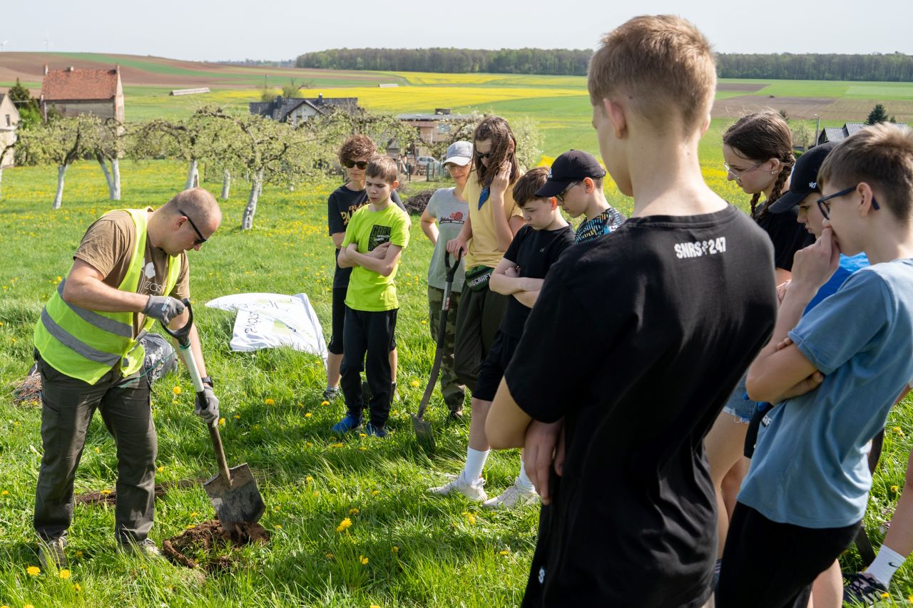 Uczniowie klasy VII po krótkim szkoleniu aktywnie brali udział w procesie sadzenia. Po krótkim relaksie uczniowie uczestniczyli w warsztatach ekologicznych, podczas których zbudowali budki dla ptaków oraz poszerzyli swoją wiedzę na temat m.in. różnorodności biologicznej i globalnej zmiany klimatu.