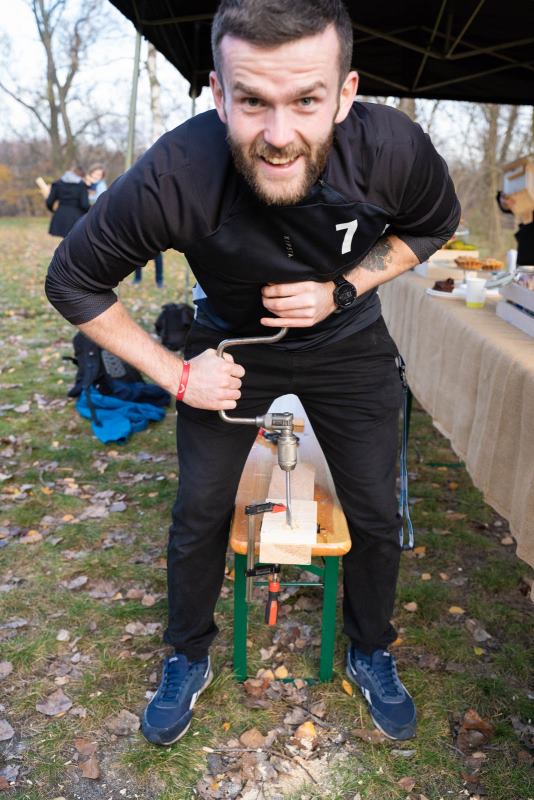 Zaprosiliśmy zaprzyjaźnionego stolarza Michała – Idę do Warsztatu, który za punkt honoru poczytuje sobie tworzenie w drewnie bez użycia elektronarzędzi. Wykonał dla nas elementy składowe budek lęgowych i kontrolował pracę tak skutecznie, że każdemu udało się stworzyć budkę dla dziuplaka.