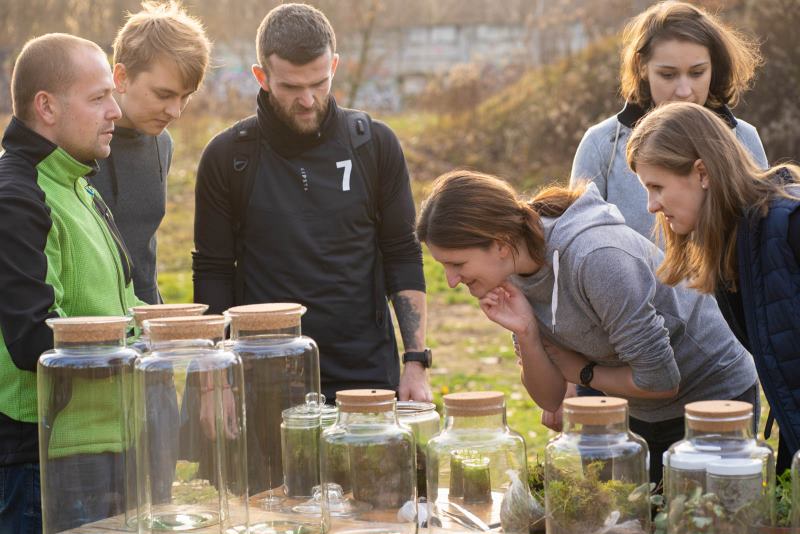 Obok niego działał nasz ekspert Bartek, który uczył, jak wykonać w słoju zamknięty ekosystem. Oczywiście niezbyt skomplikowany, ale samowystarczalny i cieszący oczy, ale przede wszystkim taki, który przetrwa. Ogrody w słoju są naprawdę urokliwe.