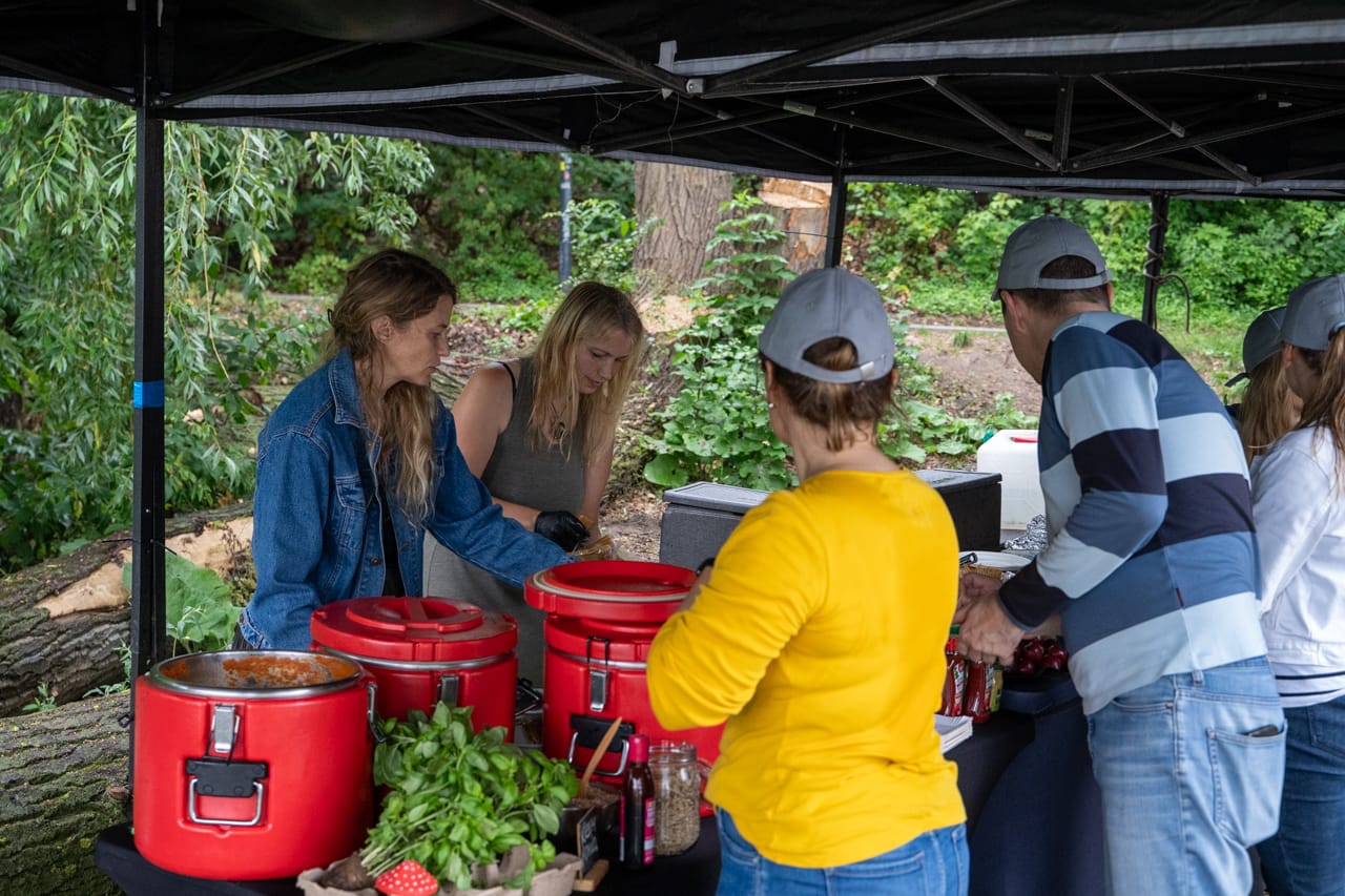 Po intensywnej pracy znalazł się czas na zasłużony odpoczynek – uczestnicy mogli zrelaksować się przy wyjątkowym, wegetariańskim cateringu poTrava.