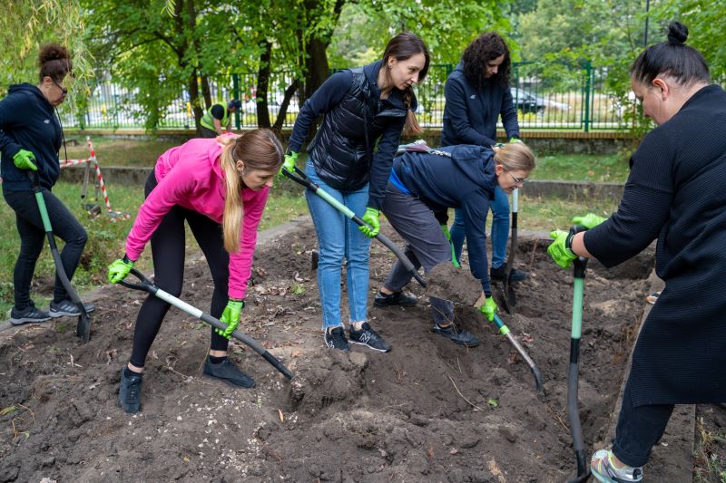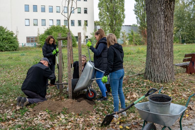 Sadzenie drzew i krzewów w domu dziecka w Warszawie