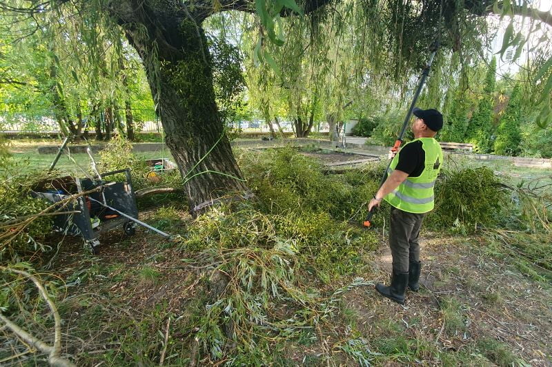 Usunięto także jemiołę, która zagrażała drzewom. Dzięki temu zabiegowi rosnąca na terenie parku wierzba przeżyje jeszcze wiele lat!