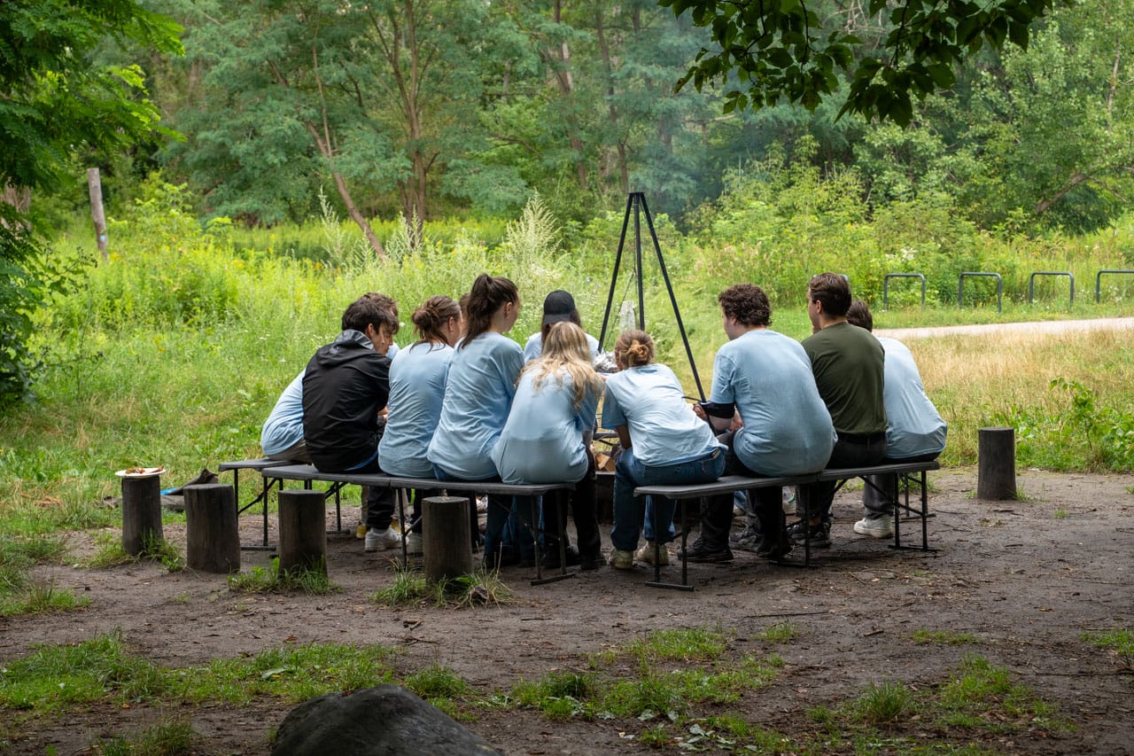 Po zakończonej pracy na wszystkich czekał drobny poczęstunek, który stał się okazją do dalszych rozmów i wymiany wrażeń. Chwila odpoczynku nad Wisłą pozwoliła nacieszyć się czystą przestrzenią i docenić efekty wspólnego wysiłku. To był czas nie tylko na regenerację sił, ale też na integrację i budowanie więzi między uczestnikami.